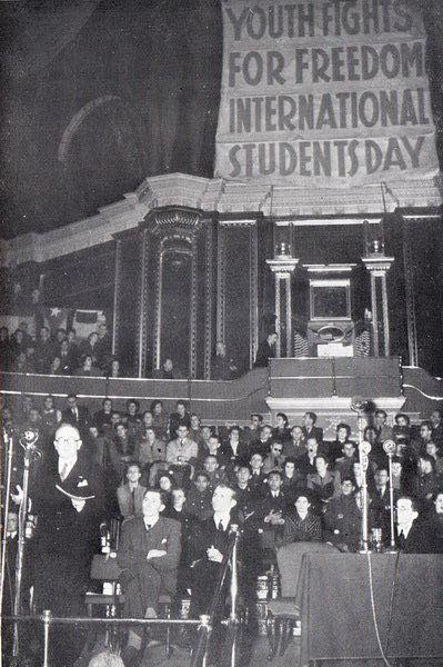„My studenti Velké Británie, jejích dominií a Indie, Severní a Jižní Ameriky, Sovětského svazu, Belgie, Československa, Francie, Řecka, Číny, Holandska, Norska, Polska, Jugoslávie a všech svobodných zemí, abychom uctili památku popravených a umučených studentů, kteří jako první zvedli svůj hlas na znamení odporu proti utlačovatelům roku 1939, prohlašujeme 17. listopad Mezinárodním dnem studentstva.“