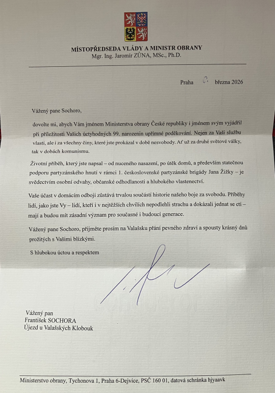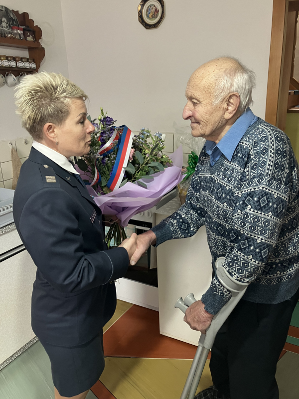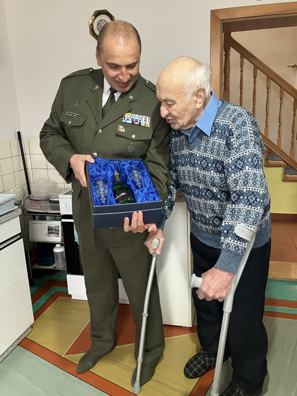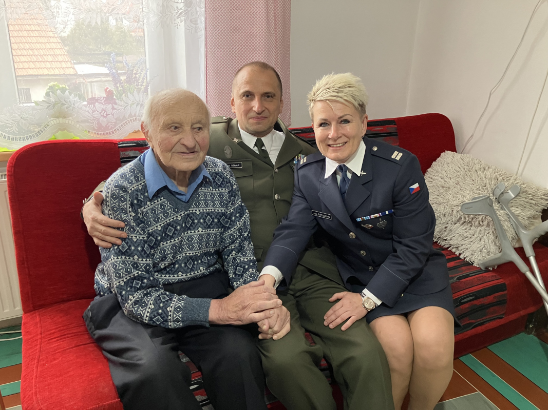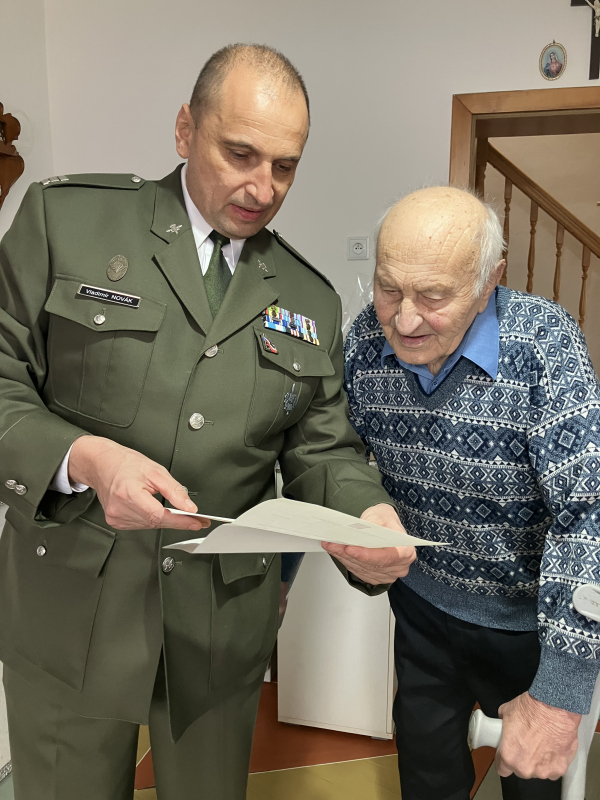 Mezi gratulanty nechyběli kontaktní pracovníci péče o válečné veterány Ministerstva obrany ve Zlínském kraji prap. Vladimír Novák a nrtm. Lucie Špitzerová. Společně s terénním pracovníkem ČSOL Karlem Vaculíkem mu osobně předali dopis od ministra obrany ČR Jaromíra Zůny.