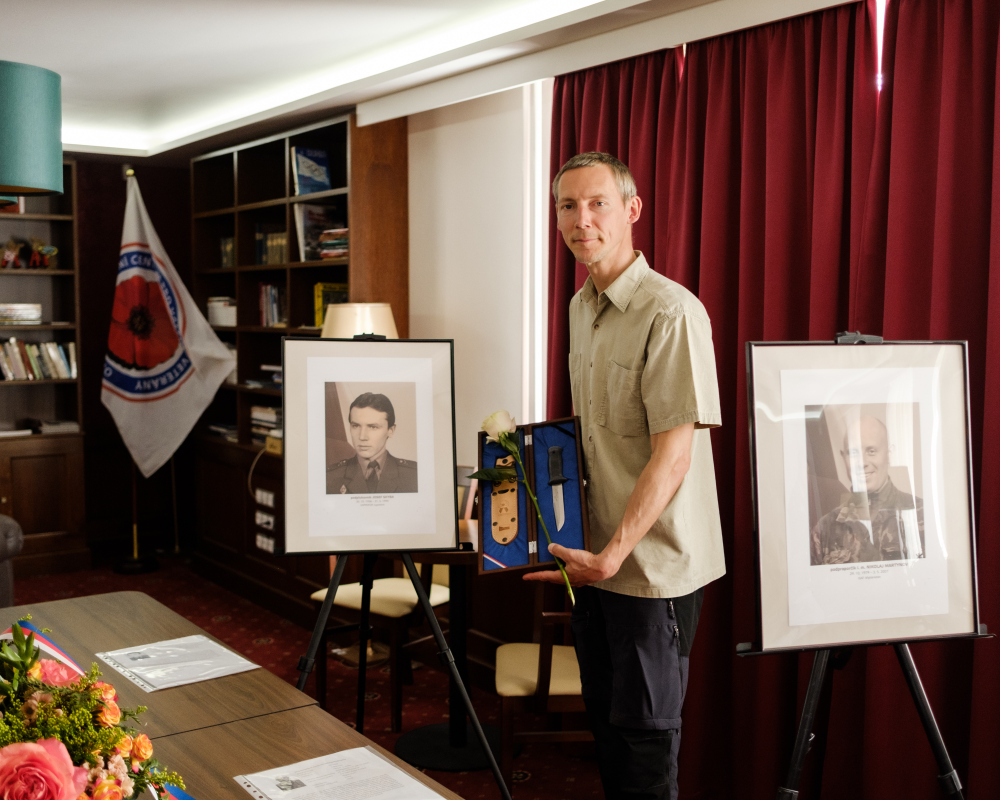 Díky novelizaci zákona o válečných veteránech jsme mohli využít možnosti udělit osvědčení válečného veterána in memoriam. Rodinám Luďka Severy a Josefa Skyby tak mohl ředitel odboru plk. Robert Speychal toto osvědčení osobně předat. Novelizace zákona o válečných veteránech umožňuje od loňského roku udělit osvědčení válečného veterána i in memoriam.