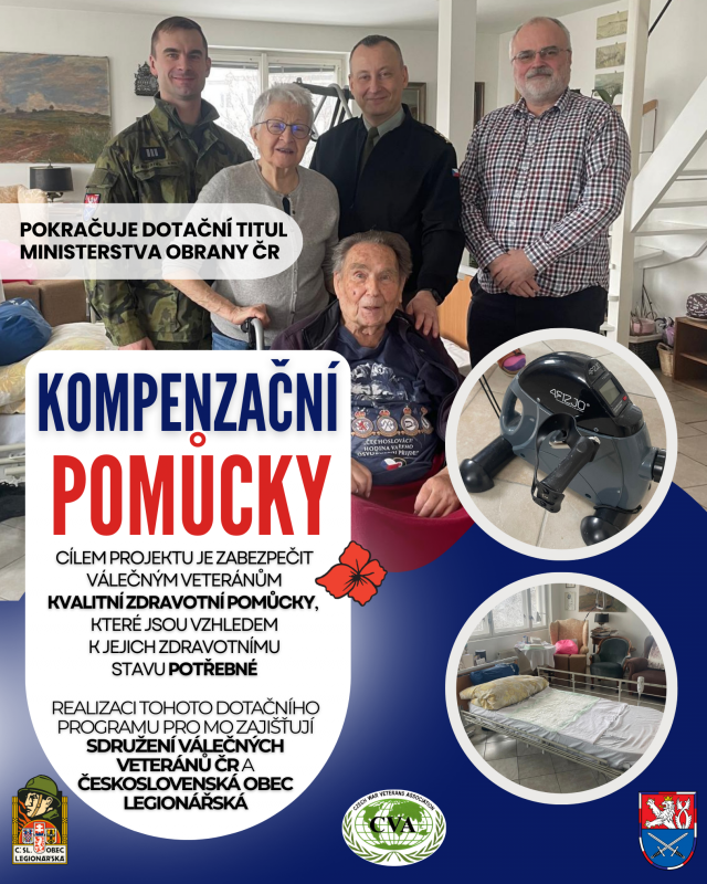 I v letošním roce pokračuje dotační titul „Kompenzační a zdravotní pomůcky válečným veteránům", v rámci kterého mohou druhováleční i novodobí VV žádat o příspěvky přes Československá obec legionářská nebo Sdružení válečných veteránů ČR.