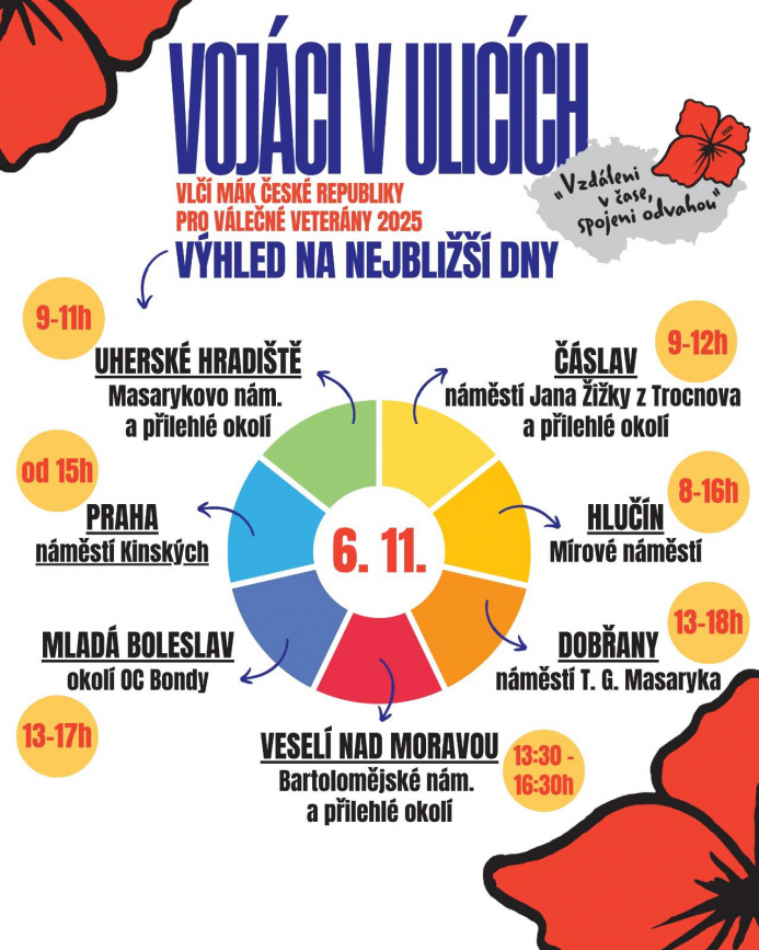 Kolo se nezastavuje, kolo se točí dááál! Zítra můžete narazit na vojáky v ulicích v 7 českých a moravských městech. A spolu s nimi na další dobrovolníky, vlčí máky, kasičky i QR-kódy.