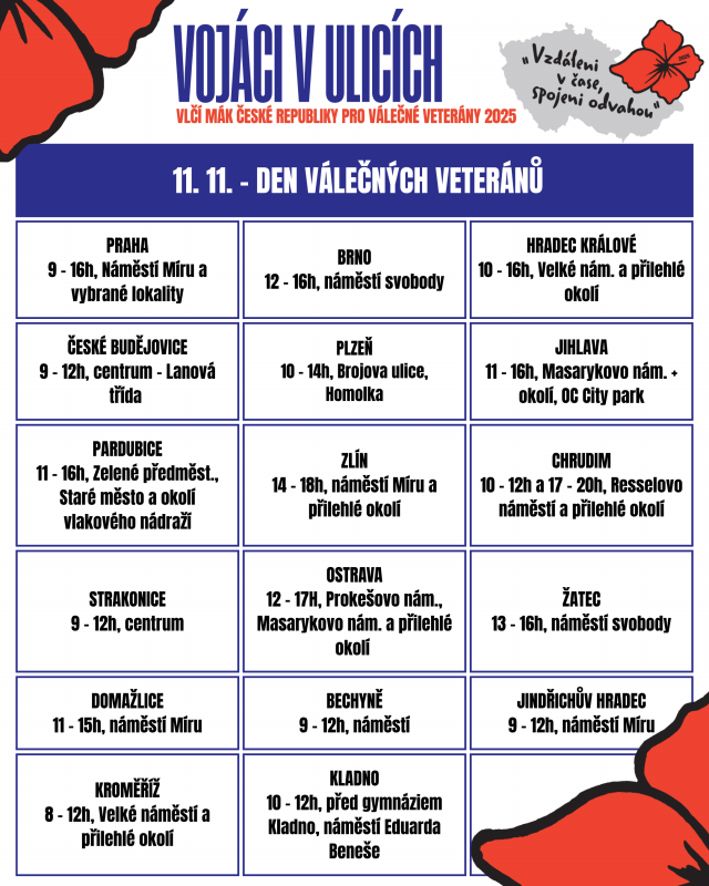 Pravidelná dávka rozpisu VOJÁKŮ V ULICÍCH v rámci sbírky Vlčí mák České republiky pro válečné veterány JE ZDE.Letošní sbírka ještě nekončí, zapojte se.