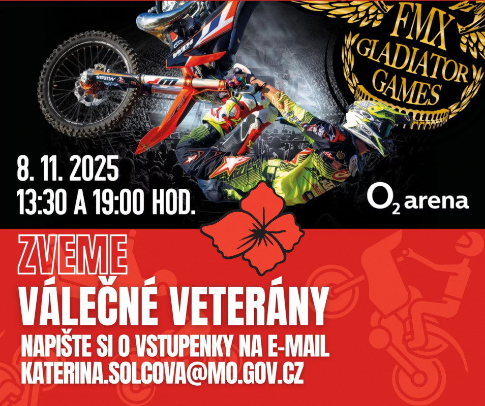 Tak tohle byste neměli minout! Vydatná dávka akcí a vstupenek zdarma pro válečné veterány. Všechny spojuje jedno - měli byste na ně vyrazit! Neváhejte, napište na e-mail katerina.solcova@mo.gov.cz a zažijte skvělé akce plné kulturních i sportovních zážitků. Do e-mailu uveďte, o jaké vstupenky máte zájem, pošleme je rovnou k vám na e-mailovou adresu zpět. A pak už zbývá jediné - vlčí mák na srdce a uvidíme se na akcích.
