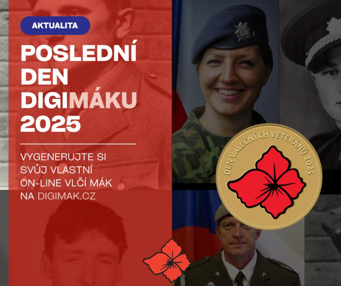 Zbývají poslední hodiny, kdy si můžete na webu digimak.cz vygenerovat svou on-line verzi Vlčího máku České republiky pro válečné veterány, a přispět tak do Vojenský fond solidarity. Doplňte si do svého DiGiMÁKu věnování hrdinovi či hrdince a umístěte si svůj vlčí mák například do profilové fotografie, do podpisu e-mailu či jen tak na své sociální sítě. Zítra, 25. 11., se tato společná iniciativa Ministerstvo obrany České republiky a Charita Česká republika opět vypne, váš DiGiMÁK 2025 vám však zůstane navždy.